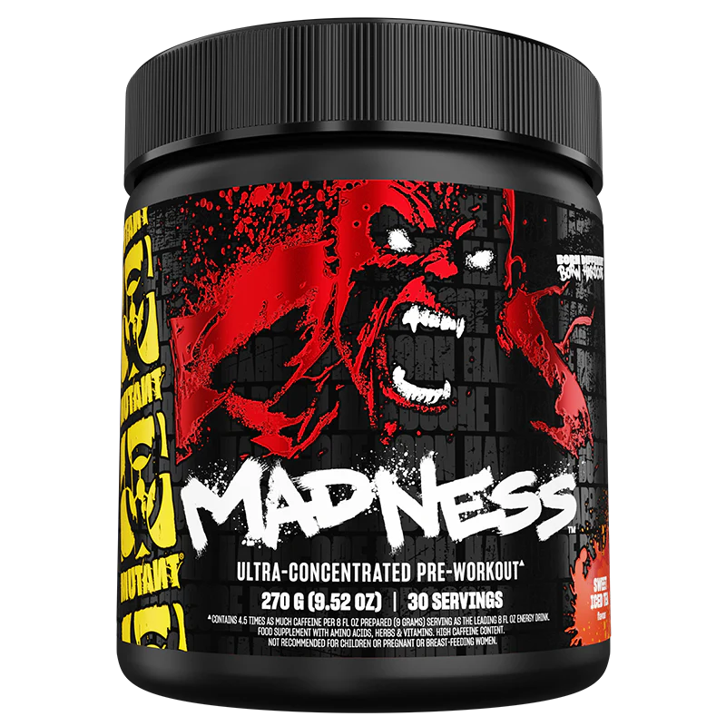 MUTANT MADNESS seizes the pre-workout experience and launches it into the stratosphere! This extra premium formula will jolt your senses and help fight fatigue. Crazy pumps, razor sharp focus, and blistering intensity await you, in SIX insane flavours. We warn you — read the entire label first before trying — MUTANT MADNESS must be used responsibly!